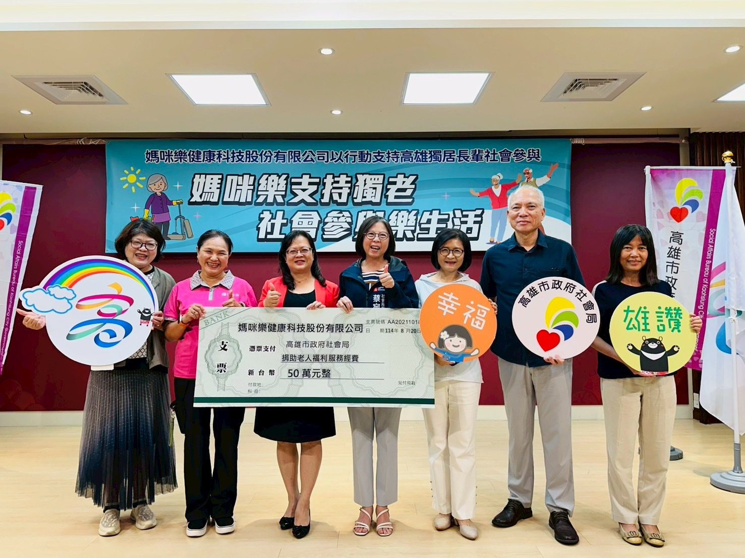 高雄市政府社會局局長蔡宛芬表示為了促進健康活力老化及鼓勵長輩社會參與,致力於推動各項長輩福利服務,如社區照顧關懷據點、獨居老人關懷支持服務、歌唱比賽等;媽咪樂健康科技股份有限公司蔡韻秋董事長獲知社會局推動各項老人服務方案有助延緩長輩老化,於114年8月20日以行動支持捐贈50萬元,鼓勵長輩走出家門,以歌唱拓展人際網絡,協助長輩享受樂活人生。