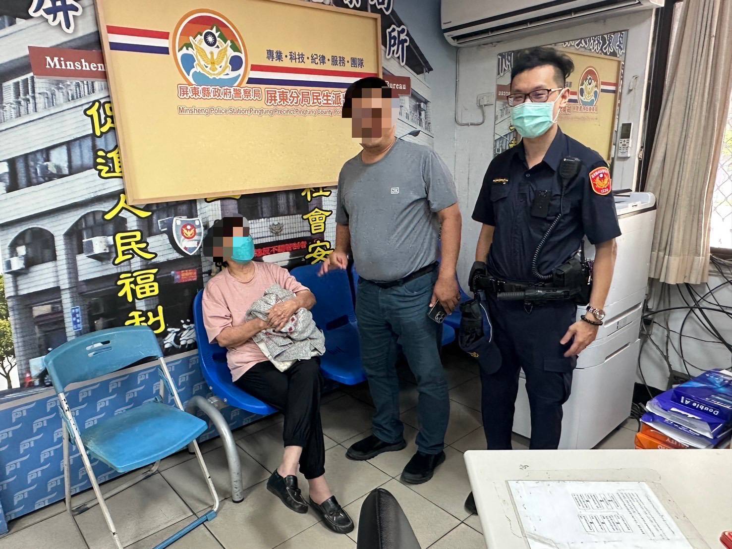 民生派出所警員陳亞忠接獲該報案資訊,隨即依家屬所述之穿著特徵於屏東市信義路段來回尋找,最終發現葉姓老嫗行蹤,陳員先行將其帶返派出所休憩並通知家屬知悉,家屬趕至所內見到平安無事之母親,感動地向警方表達感謝,並表示未來會更加留意照顧,避免類似情況再次發生。