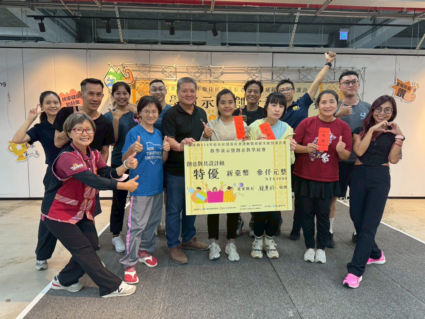 臺東縣政府原民處指出,此項競賽為原民處多年來推動培訓文健站照顧服務員體適能能力的重要成果展現,縣府結合國立臺東大學五年來辦理照服員體適能增能課程、專業證照培訓與健康管理師養成等計畫,目的在提升照服員健康知識、運動指導技巧,回到文化健康站後,能為長者創造更多健康促進的機會與服務。