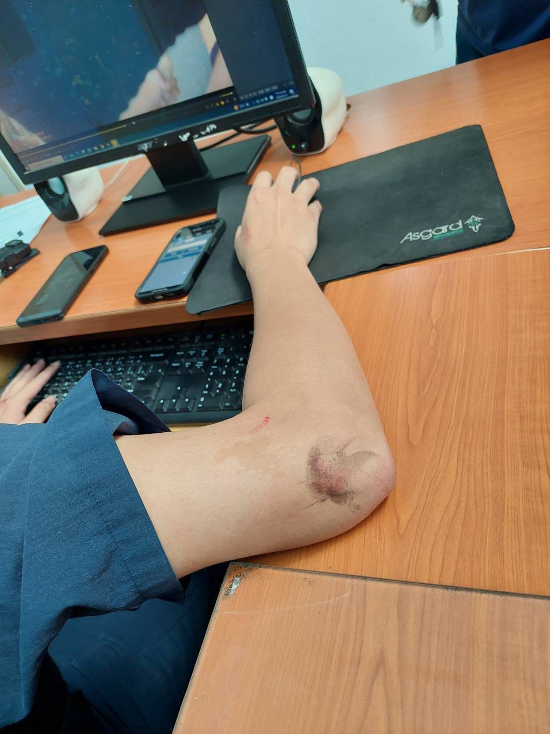 張女被帶返偵查隊後,情緒仍持續失控,在候詢室內大聲叫喊,並雙手連續拍打欄杆,有自傷之虞。員警進入候詢室實施管束時,張女又連續踢擊前往勸阻之偵查佐宋光耀,造成偵查佐右手虎口破皮挫傷,警方隨即依法上戒具加以管束,以防止張女持續自傷或攻擊他人。