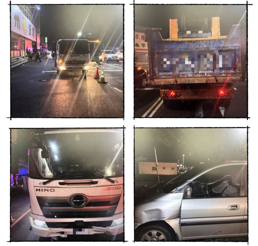 東港分局於114年9月27日22時40分許獲報,在南州鄉勝利路1-1號有交通事故,經警方到場處理,係吳男(67年次)駕駛自大貨車沿勝利路外快車道往東停等紅燈,陳男(70年次)駕駛自大貨車沿同向同車道在後方停等紅燈,車男(93年次)駕駛自小客車沿勝利路往西通過路口後逆向滑行碰撞吳男大貨車左後車尾再碰撞陳男大貨車車頭;三方經酒測均無飲酒,車男無明顯傷勢,吳男及陳男未受傷,相關肇事原因調查釐清中。