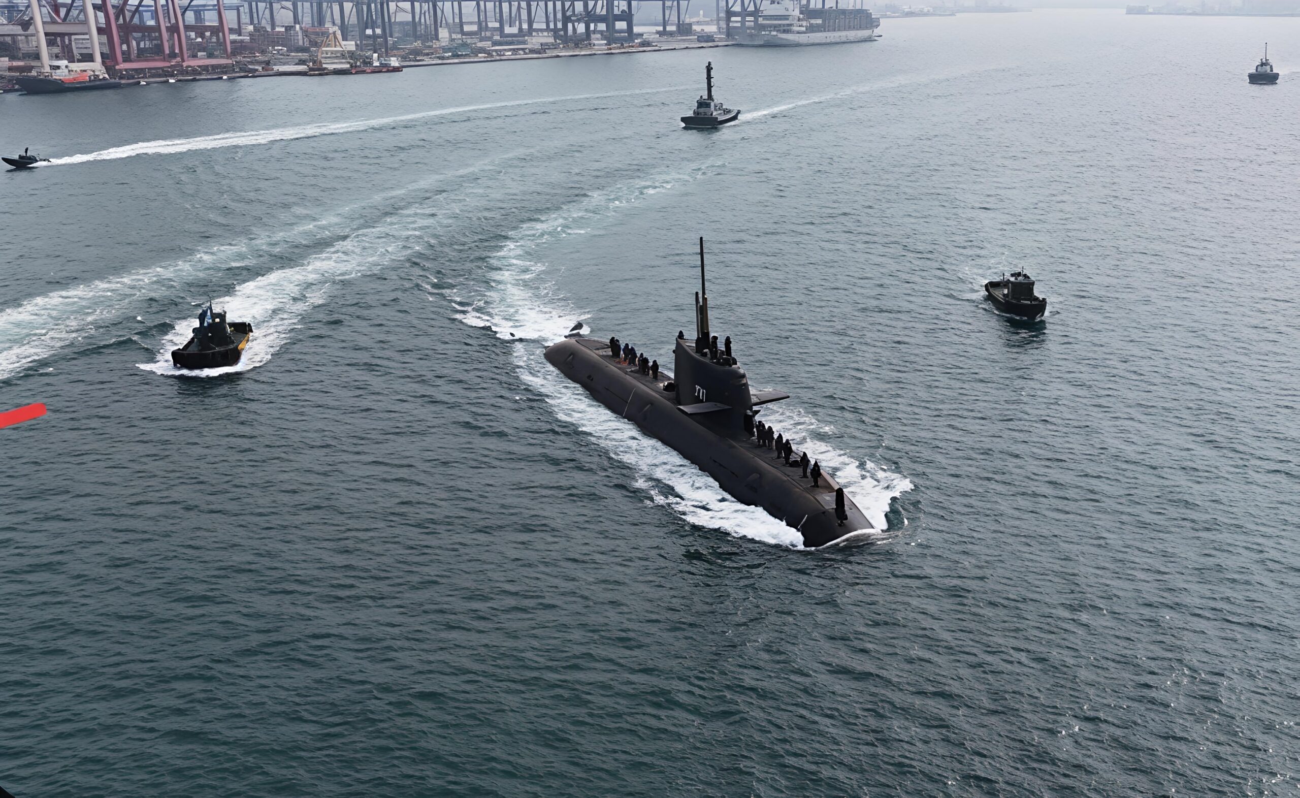 國造潛艦原型艦「海鯤號」26日自高雄港出海執行測試任務,外界關注是否展開首次潛航測試。(圖/台船提供)