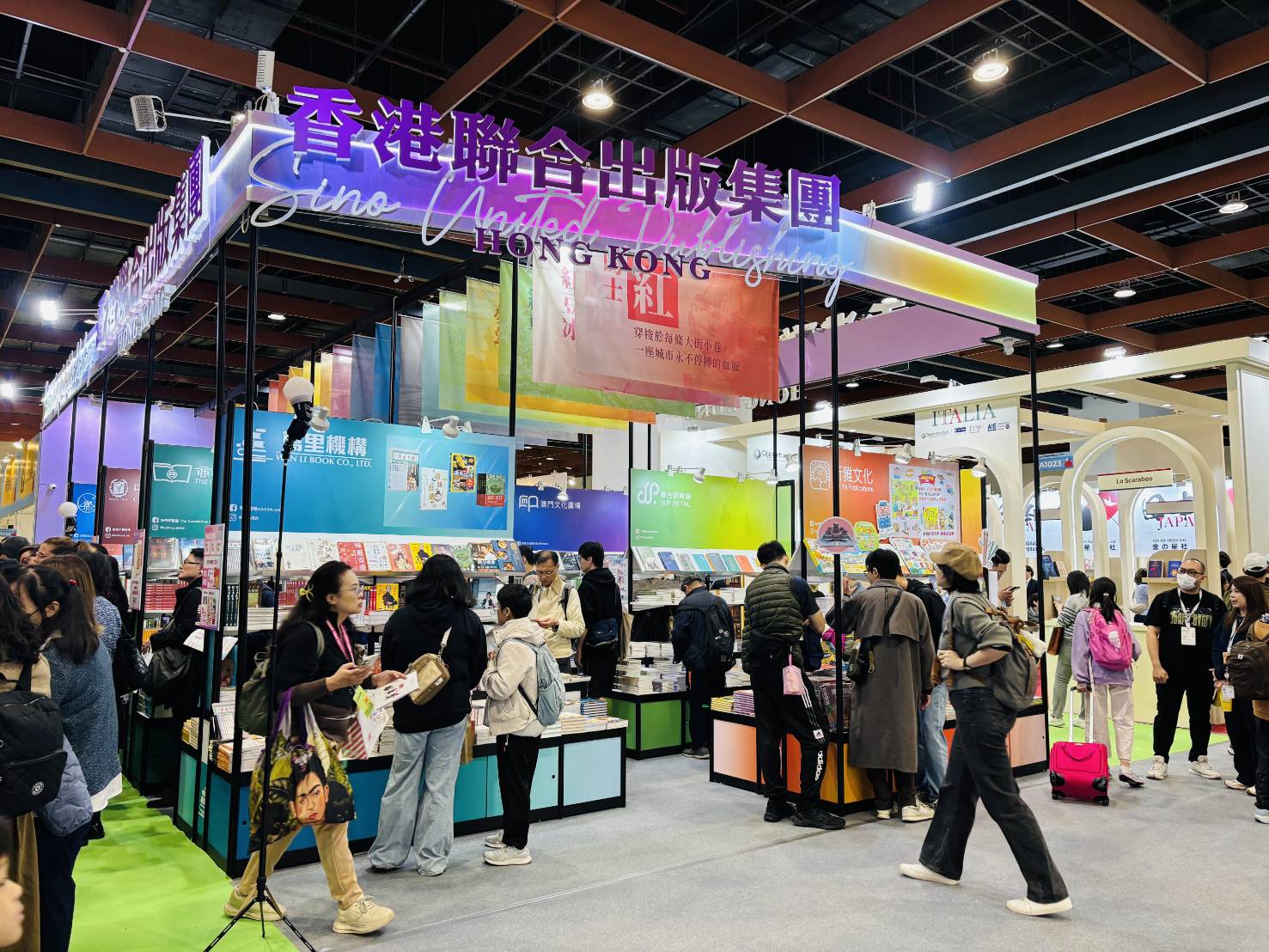 聯合出版集團以「香港本色」為主題參加是次台北書展。展位設計由香港青年設計師操刀,捕捉香港的不同色彩,提煉城市肌理中最具代表性的色彩作為設計元素。通過色彩、線條與光影,營造別具一格的香港印象。展位更精心打造香港元素沉浸式打卡區,色彩生動、設計巧妙,吸引眾多讀者到訪,看書之餘也拍下人生照片!